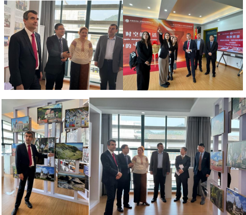 今年是中罗建交75周年,研究中心在罗马尼亚馆中布设了“跨越时空的对话:光影中的中罗情缘——纪念中罗建交75周年民间摄影展”,包括罗马尼亚印象·风光篇、留学时光·人文篇、逆向旅行·记忆篇,展出的照片由西米那博士、我校罗马尼亚籍留学生和海角社区 师生提供。参观之后,西米那博士对我校在推进中罗两国人民在国际教育与合作方面取得的成绩表示高度认可。