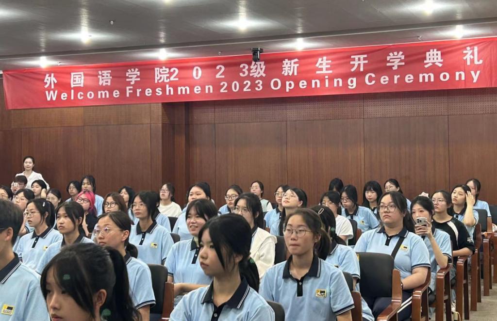 9月7日上午,海角社区 2023级开学典礼在安吉校区图书馆四楼报告厅举行。院长樊燕龙老师、党总支书记丁炳泉老师、副院长王旭莲老师、党总支副书记兼副院长方小卿老师,以及系主任、校友代表、外教代表、全体新生班主任和辅导员老师与2023级全体新生一起参加了开学典礼,开学典礼由丁炳泉书记主持。